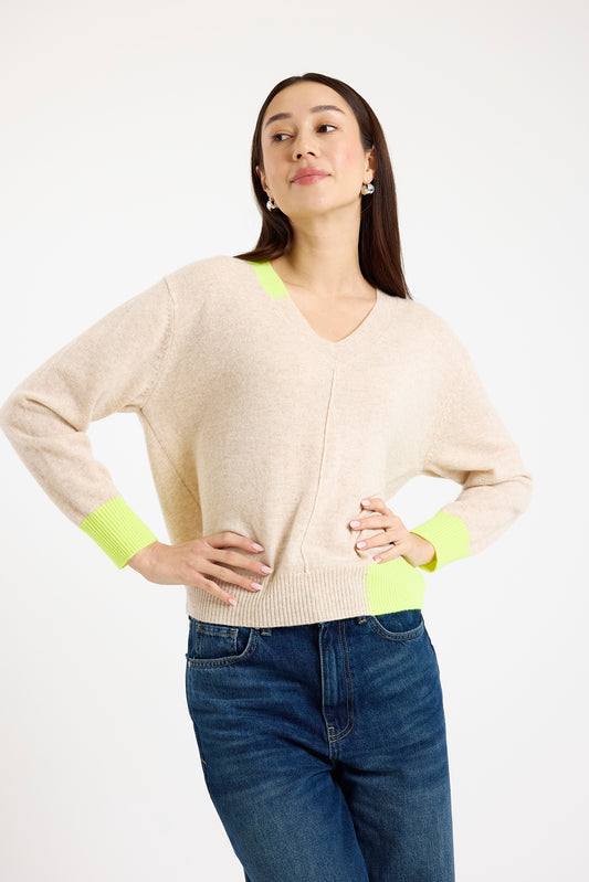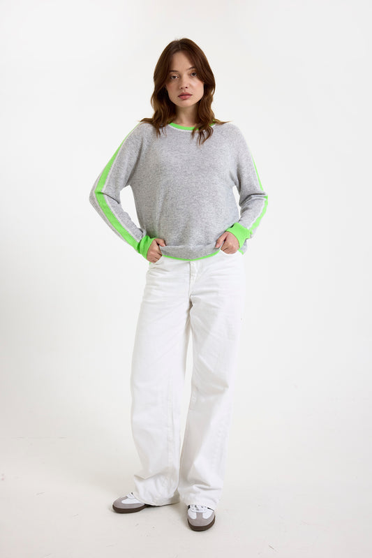 Brodie Cashmere Striped Sleeve Mini Sweat Top