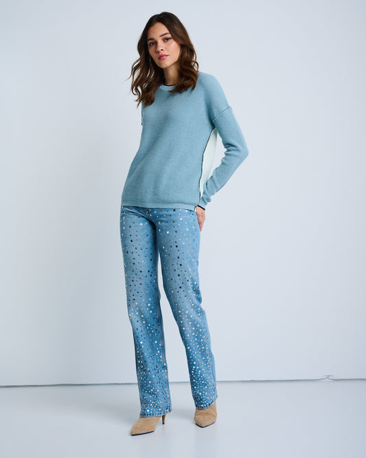 Brodie Cashmere Striped Sleeve Mini Sweat Top