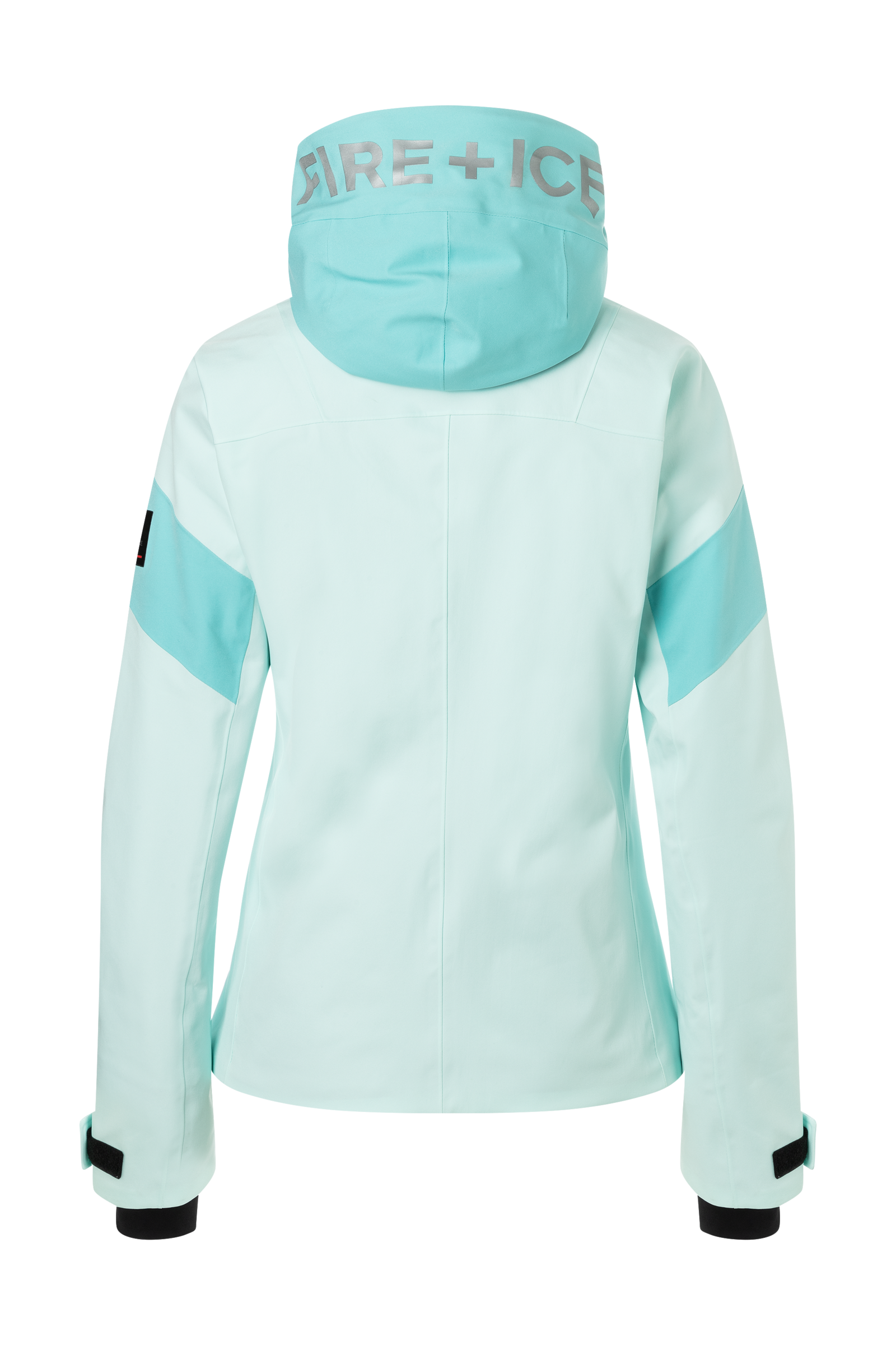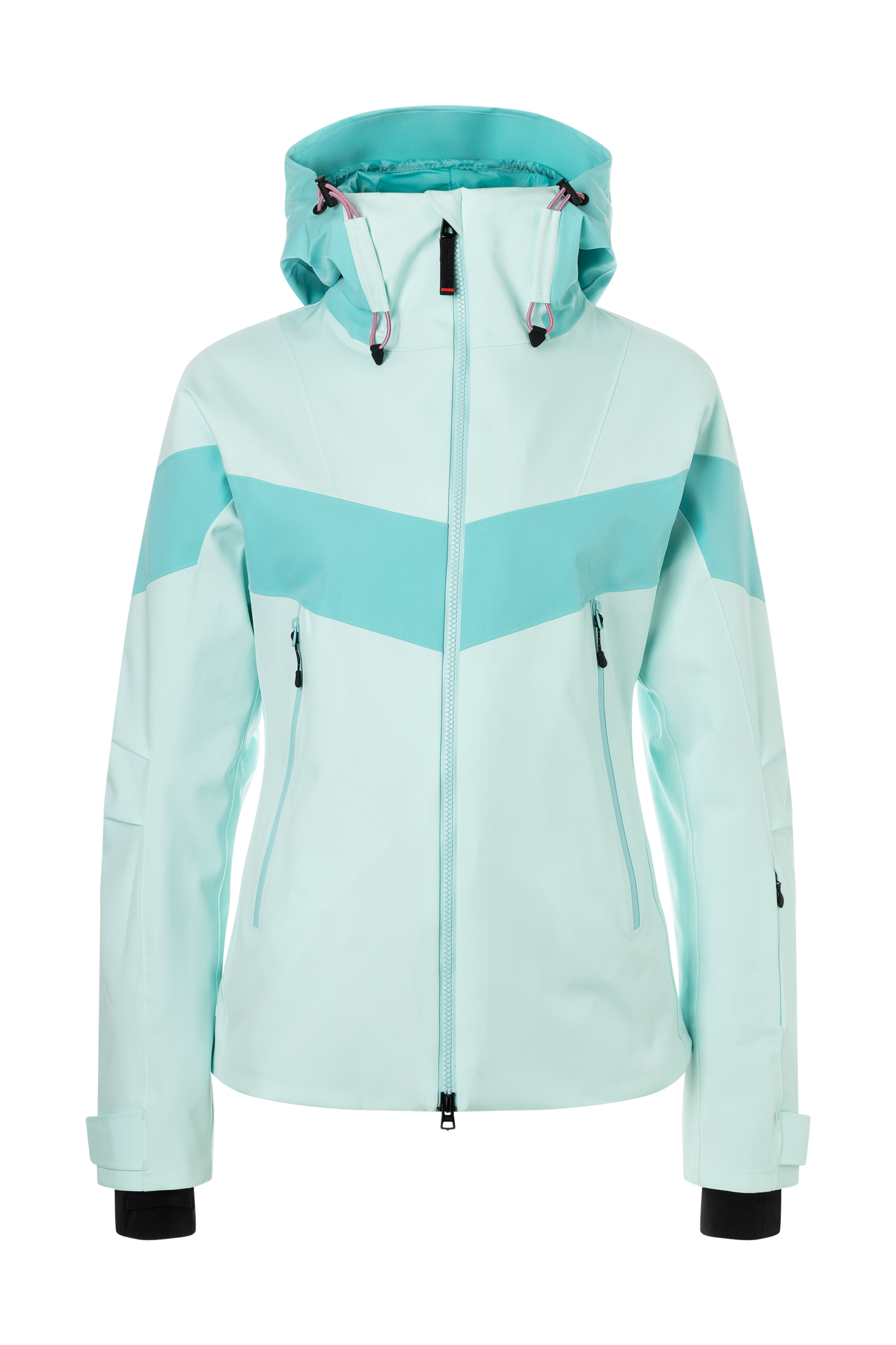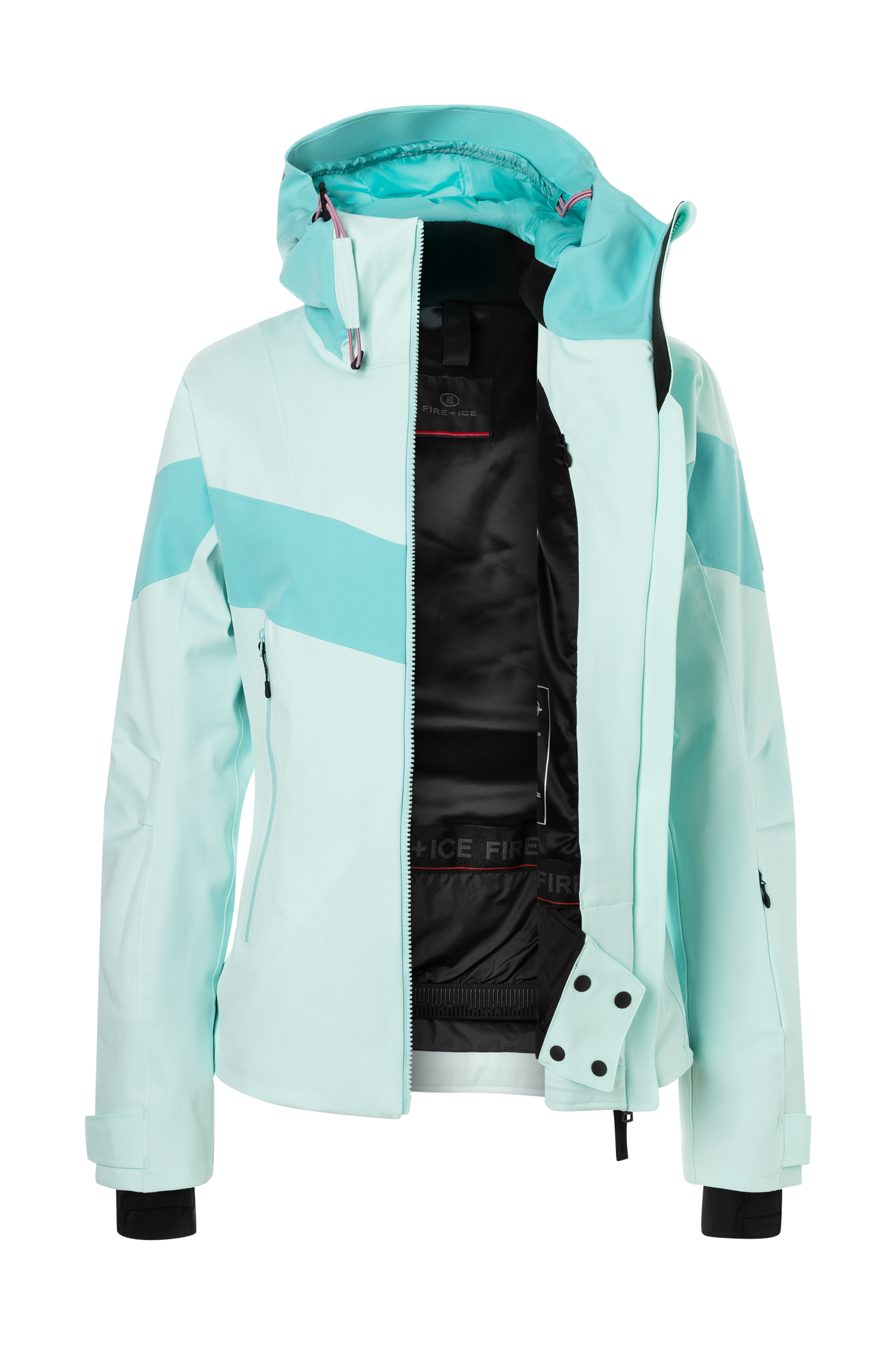 Slightly tailored cut;Hood with visor and large FIRE+ICE print;Fastens with two-way zip with B logo pendant;Two zipped side pockets;FIRE+ICE patch and ski pass pocket on the left sleeve;Width-adjustable sleeve hem with Velcro fastener;Elasticated cuffs with thumb hole;Drawstring with elasticated cord at the hem; Zipped and mesh pocket inside;Snow skit with press studs;Taped seams;Made from two-layer, water-repellent, breathable 4-way stretch with recycled content (GRS certified); Water column 10,000 mm, breathability 15,000 g/m²/24h;Certified according to OEKO-TEX® STANDARD 100