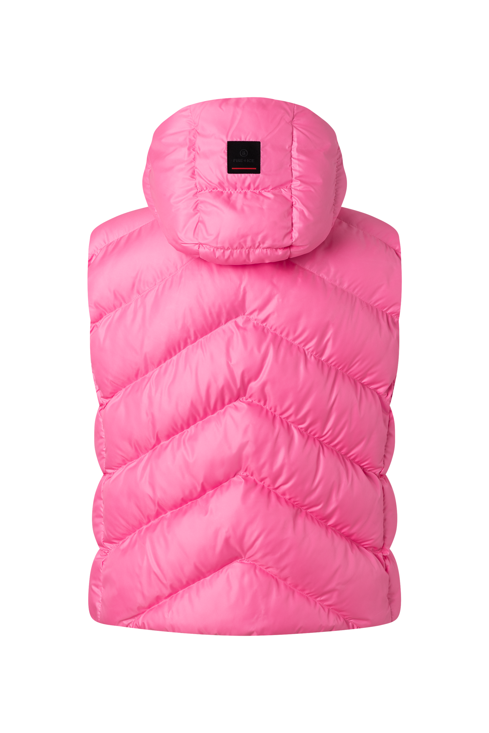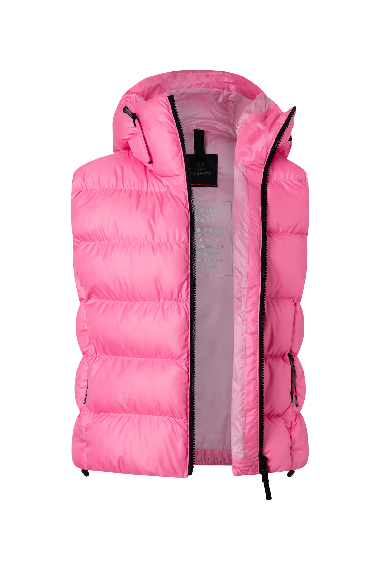 Straight cut;Hood with drawstring, elasticated cord and FIRE+ICE patch;Fastens with two-way zip with B logo pendant;Zipped pocket at chest height on the left;Two zip side pockets with reflective cord;Drawstring with reflective elasticated cord at the hem;Sleeveless with elasticated armholes;Made from water-repellent, shiny quilted fabric;Filled with THERMORE® Ecodown® fibers made from 100% recycled polyester;Certified according to OEKO-TEX® STANDARD 100
