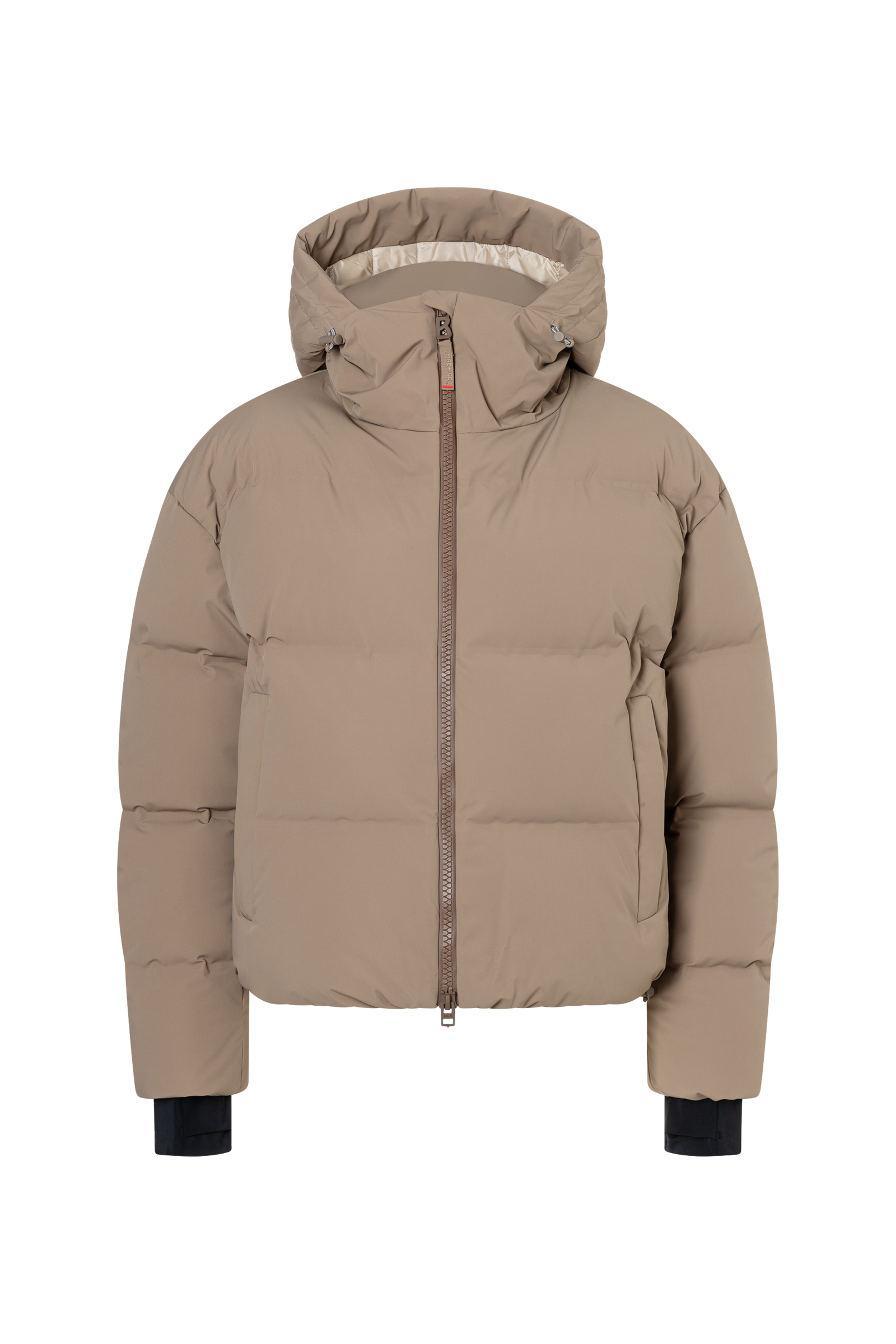 Straight cut;Hood withwuth drawstring and elasticated cord;Fastens with two-way zip with B logo pendant;Two side zip pockets;Drawstring with elasticated cord at hem;Fire+Ice patch and zip ski pass pocket on left sleeve; Jersey cuffs with thumbhole on the sleeve hem;Zipped pocket and snow skirt with press studs on the inside; Made from two-layer, water-repellent and breathable 4-way stretch fabric; Water column 10,000 mm, breathability 10,000 g/m²/24h; Filled with THEREMORE® Ecodown® fibres made from recycled polyester