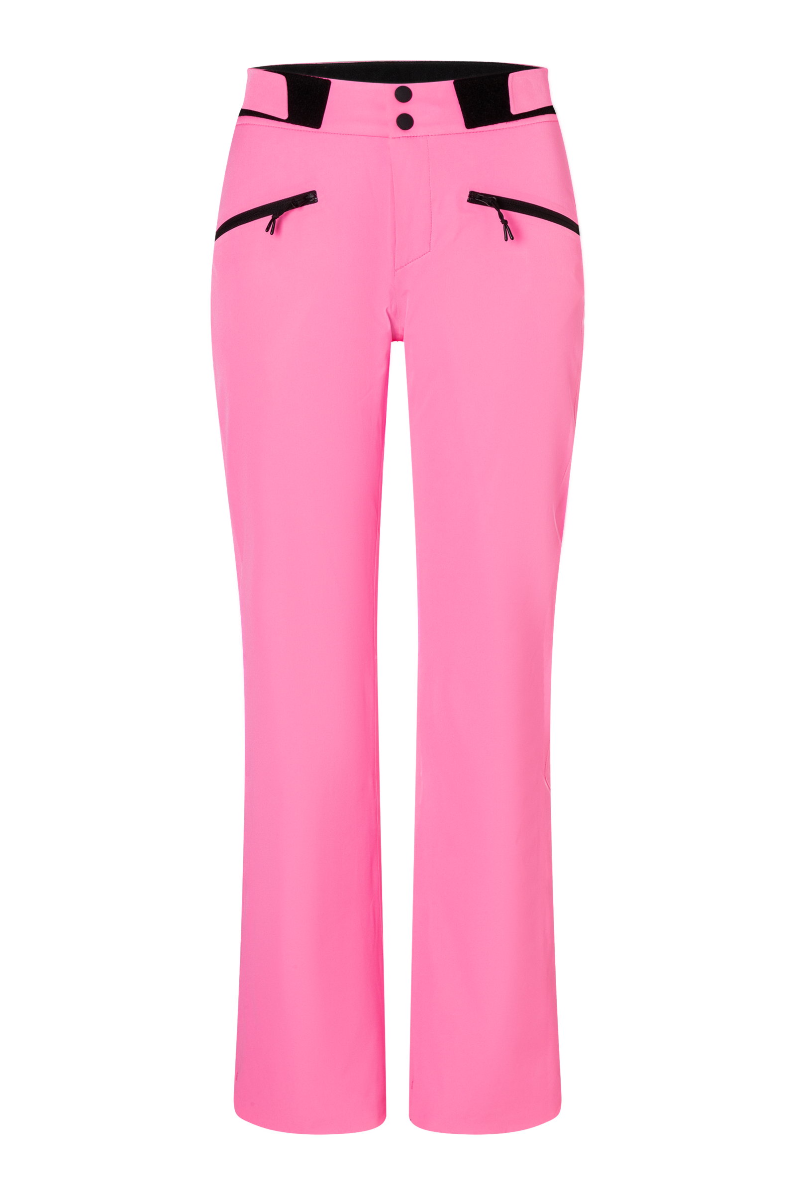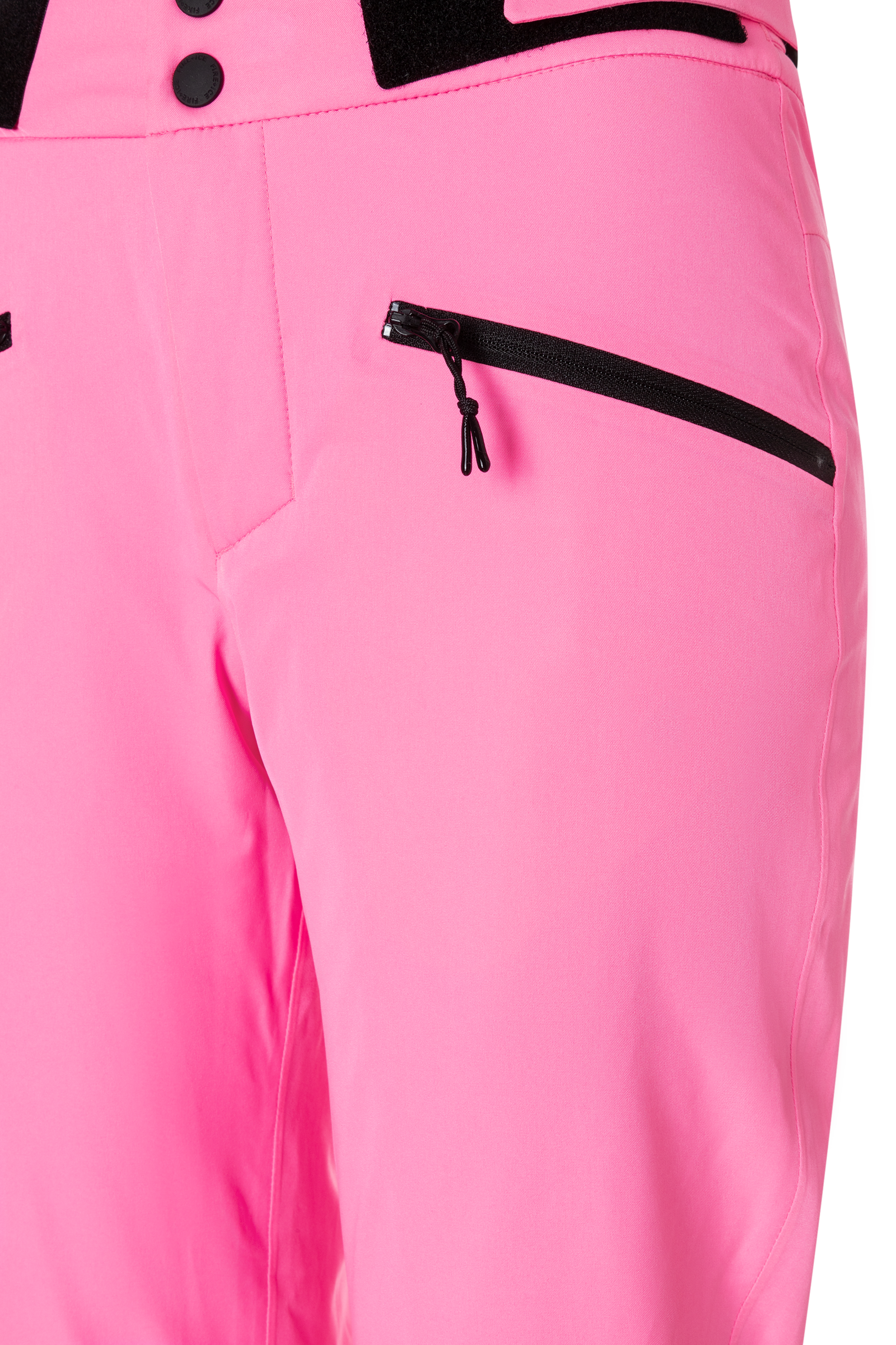 Straight cut;Fastens with a zip, two FIRE+ICE press studs and hooks;Waistband slightly raised and padded at the back;Adjustable width with side Velcro fasteners and elasticated tapes;Two zipped side pockets;Snow skirt with elasticated hem;Underlaid zip hem zlit at the back;FIRE+ICE patch on the back;Taped seams;Made from two-layer, water repellent and breathable 4-way stretch fabric;Warming, thin padding;Water column 20,000 mm, breathability 20,000 g/m²/24h;Certified according to OEKO-TEX® STANDARD 100;blue-sign certified