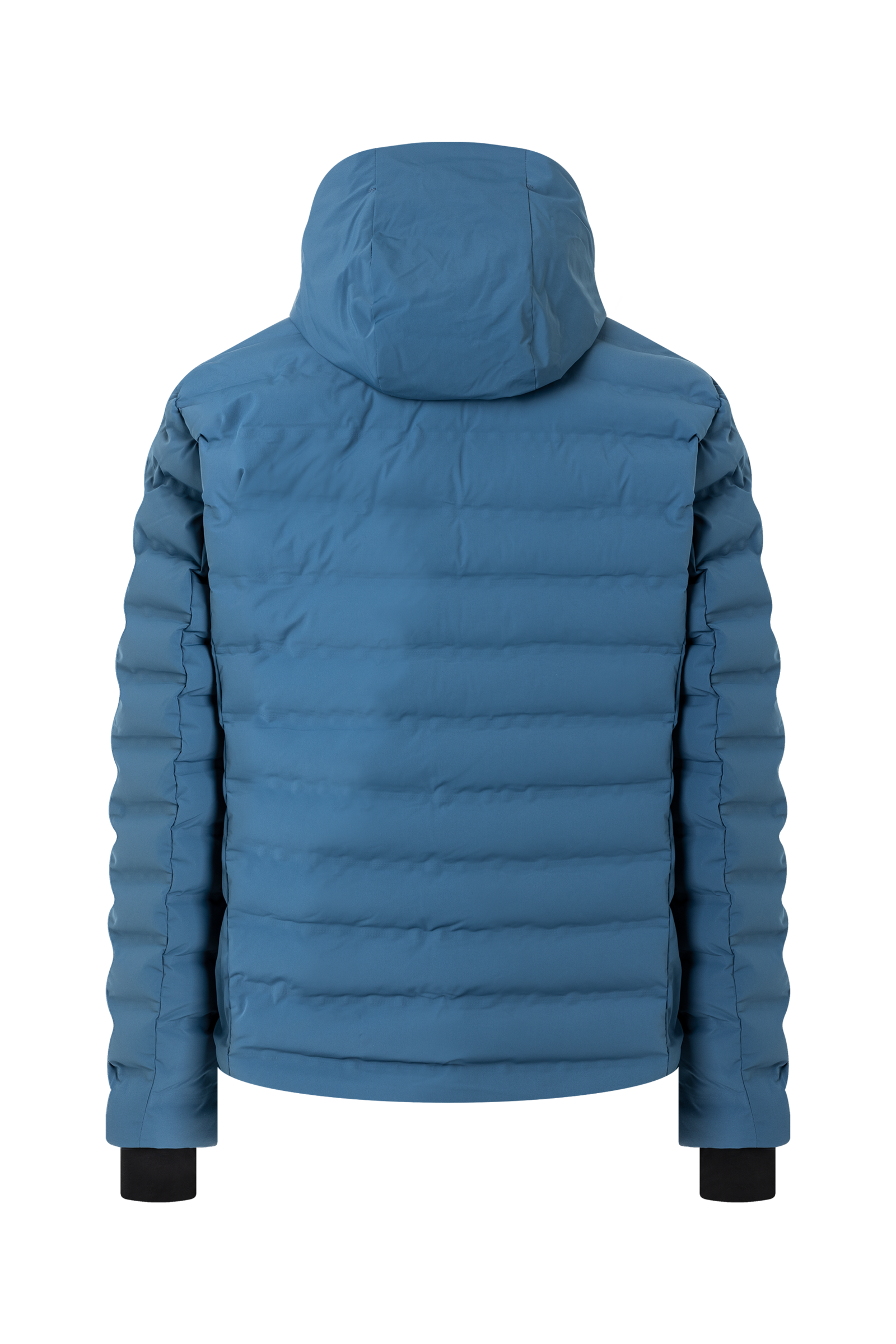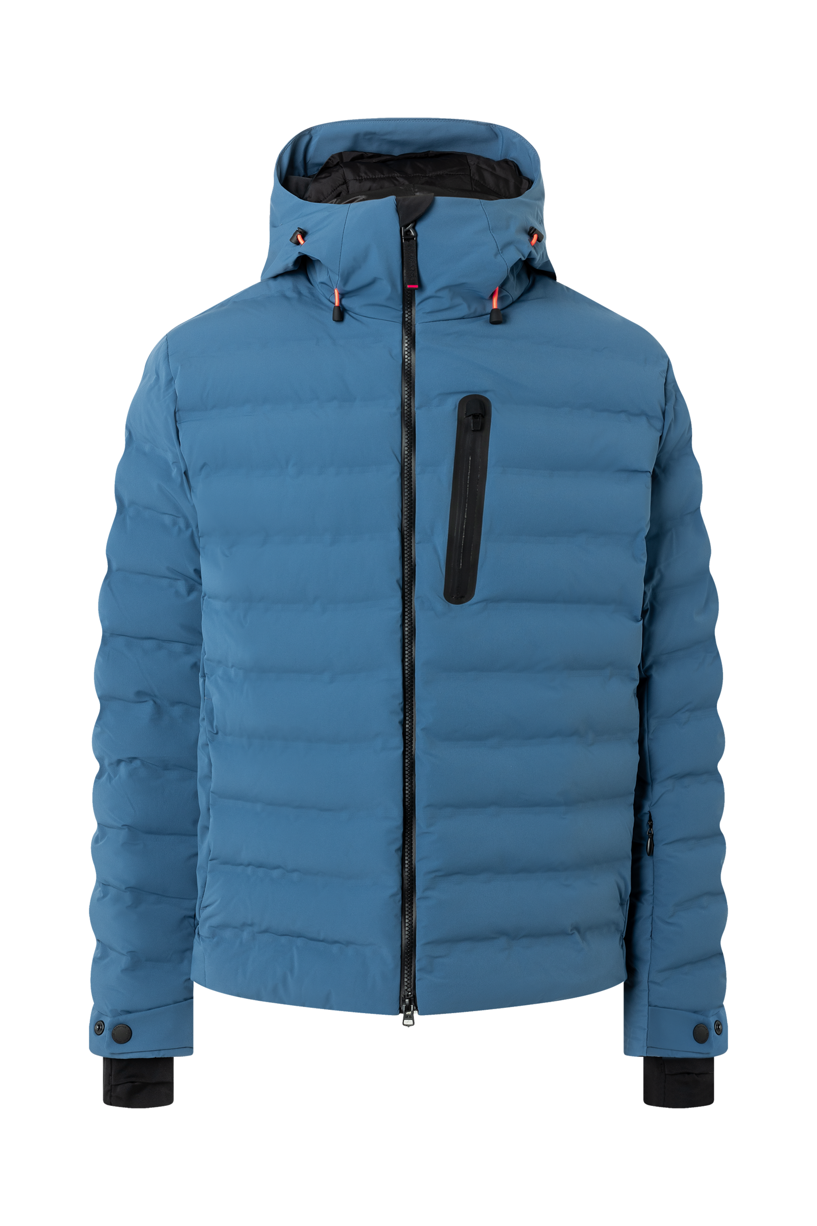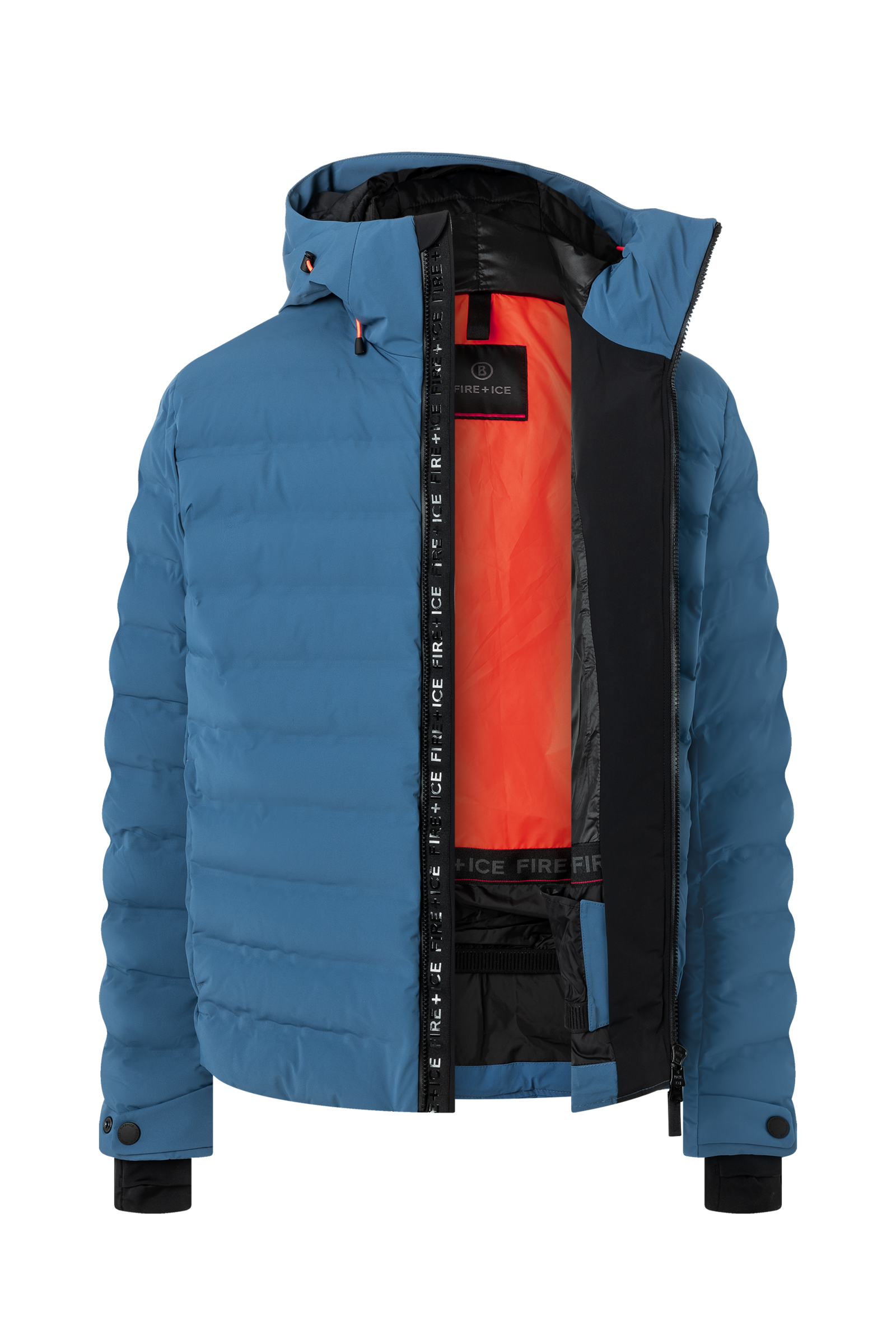 Straight cut; Hood with drawstring and elasticated cord;Fastens with two-way zip with B logo pendant;Shiny FIRE+ICE print at the bottom of the zip;Two side zip pockets;Mesh lines zip slit on the side seam;Drawstring with elasticated cord at the hem;FIRE+ICE patch and small zip ski pass pocket on the left sleeve;Width-adjustable sleeve hem with press stud fastening;Elasticated jersey cuffs with thumb hole on the sleeve hem; Zip pocket and snow skirt with press studs on the inside;Made from two-layer, water-repellent and breathable 4-way stretch fabric;Water column 10,000mm, breathability 10,000 g/m²/24h);g/m²/24h);Filled with THEREMORE® Ecodown® fibres made from 100% recycled polyester;