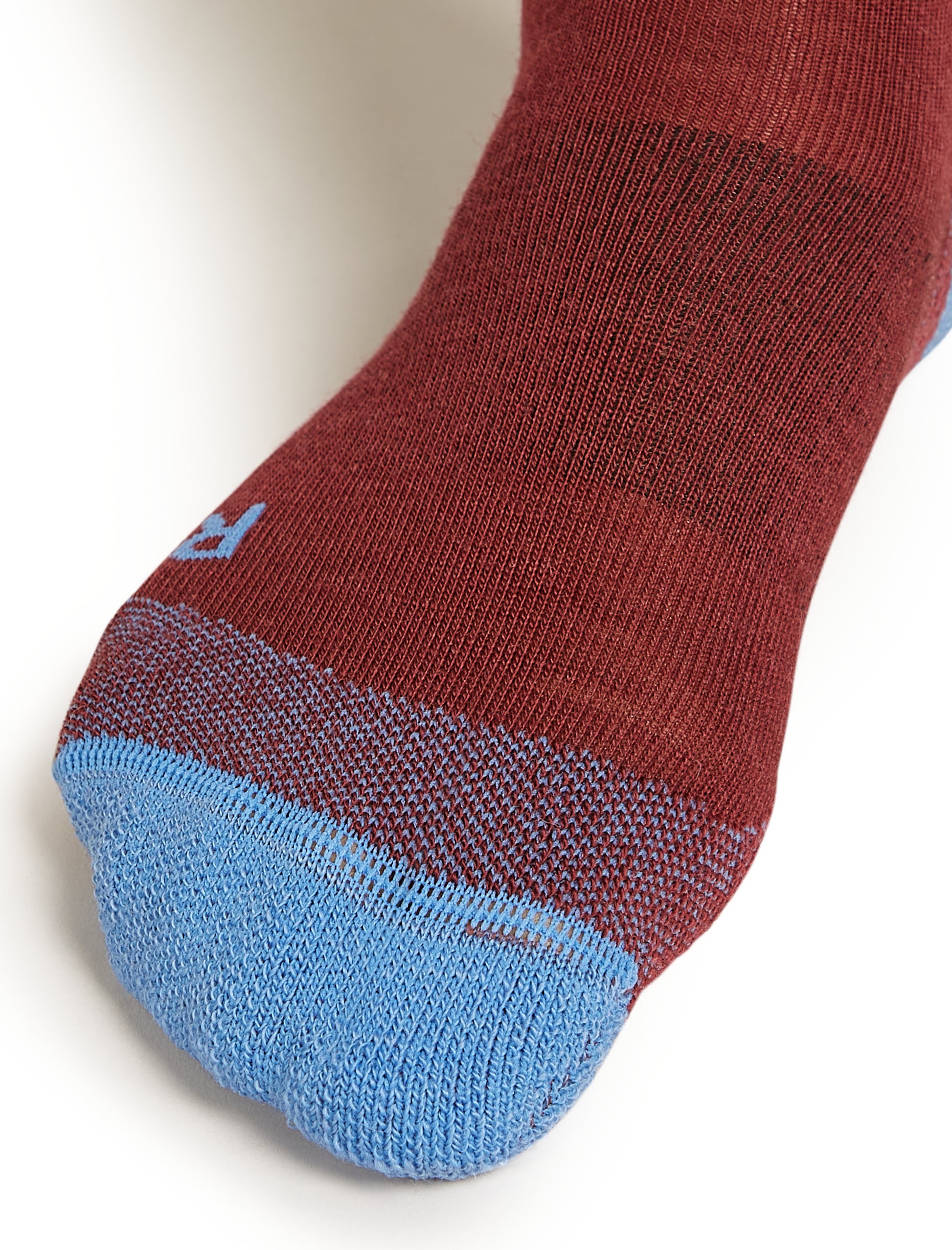 The Ski+ Light Over the Calf socks are durable, stretchy and highly breathable socks for skiing the resort or the backcountry. The strategically cushioned design features a blend of merino wool, nylon and LYCRA® that’s anatomically sculpted with key support zones in the ankle, Achilles, and instep. The breathe zone increases ventilation, and the seamless toe reduces bulk and prevents blisters.