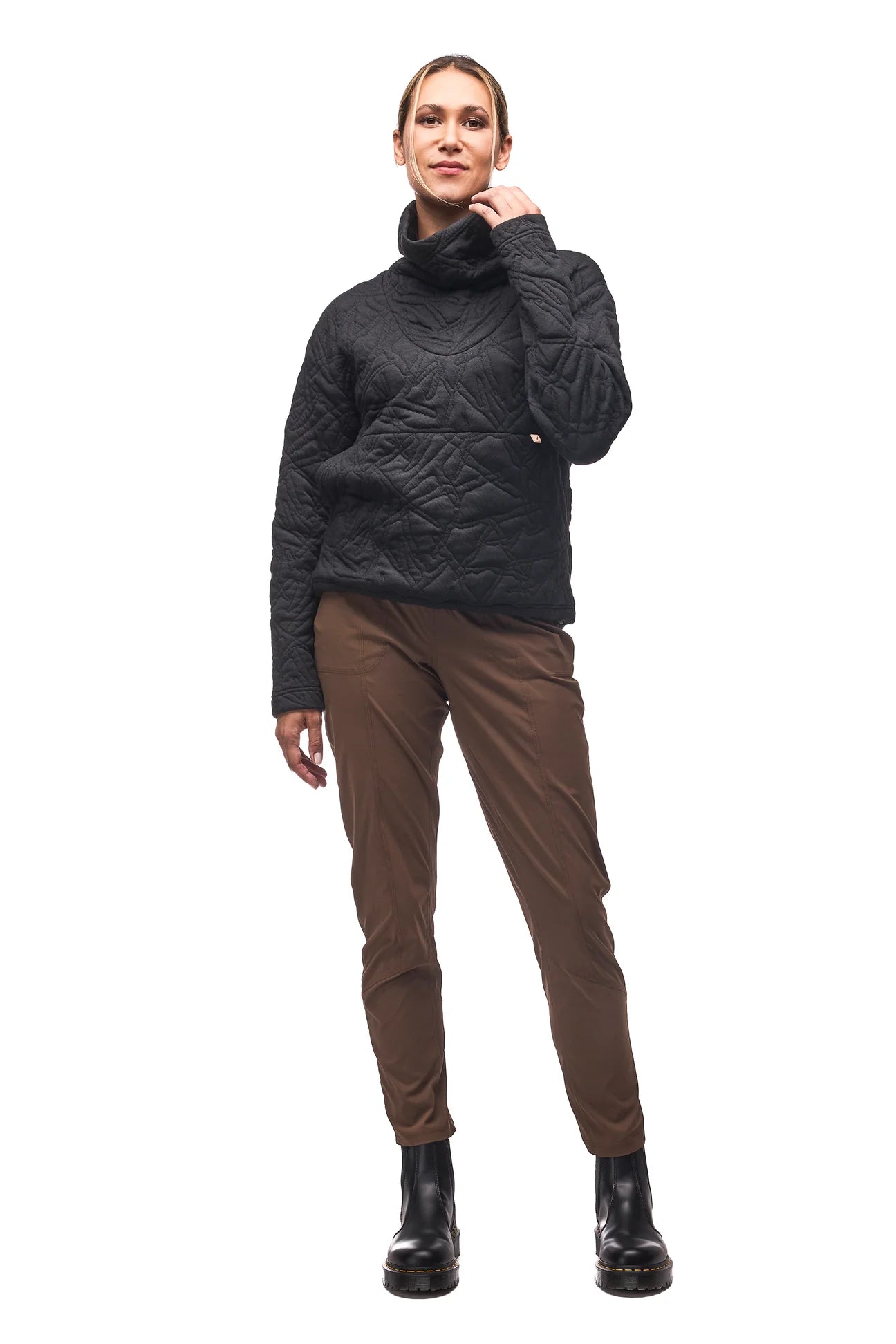 Cowl neck sweater with a unique quilted pattern from 'Indyeva Branches'.
