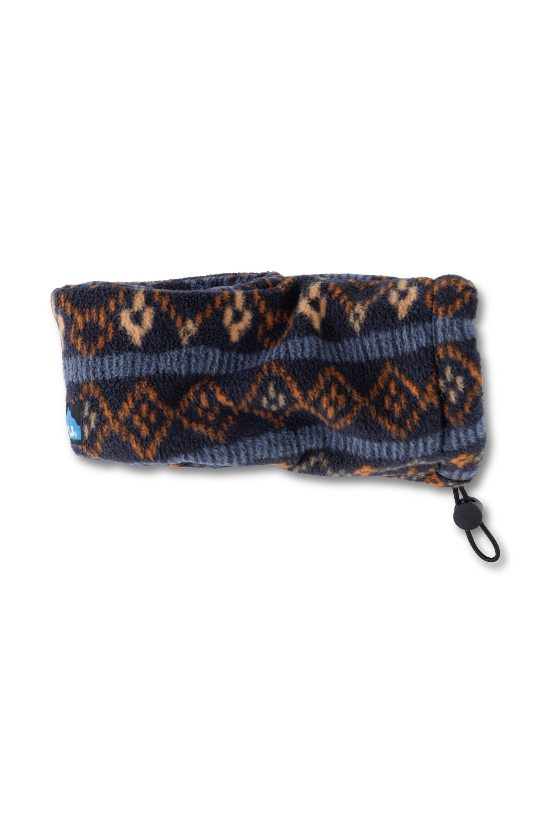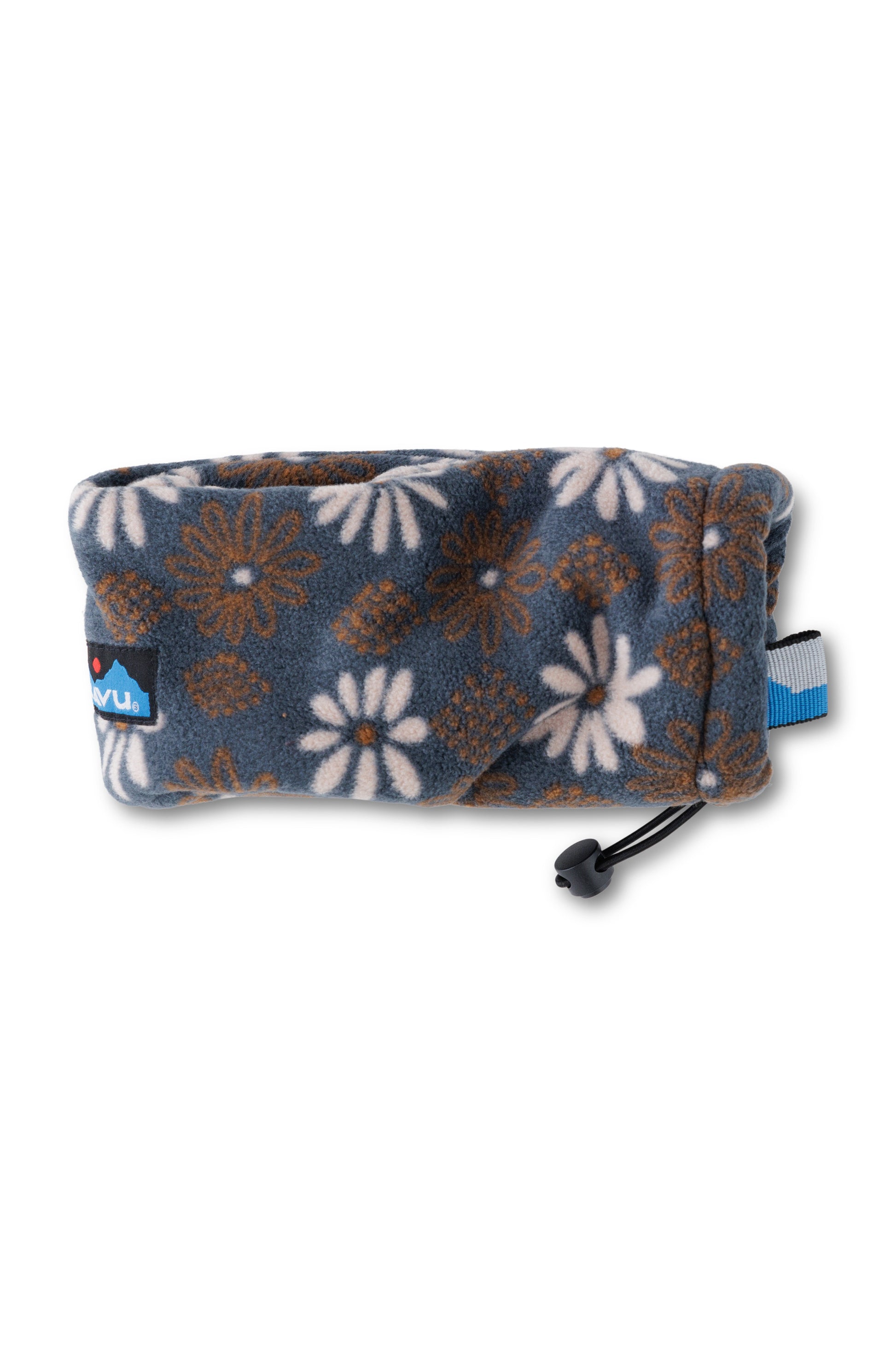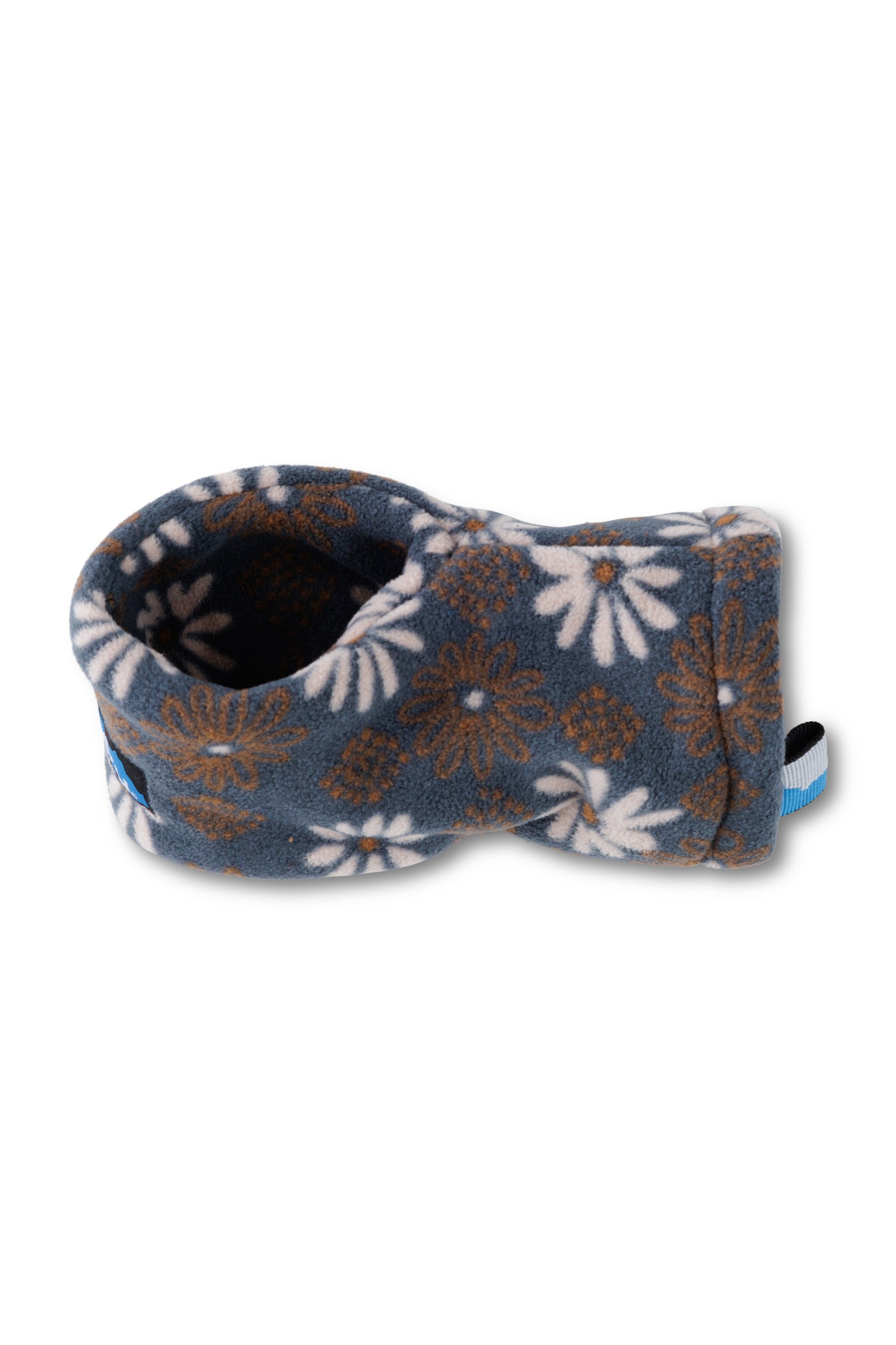 Printed polar fleece beverage insulator mitt with can/bottle pocket to keep hold of your cold drink on a wintery night, bungee cord and cord lock on cuff, pattern webbing loop makes it easy to clip on for storage