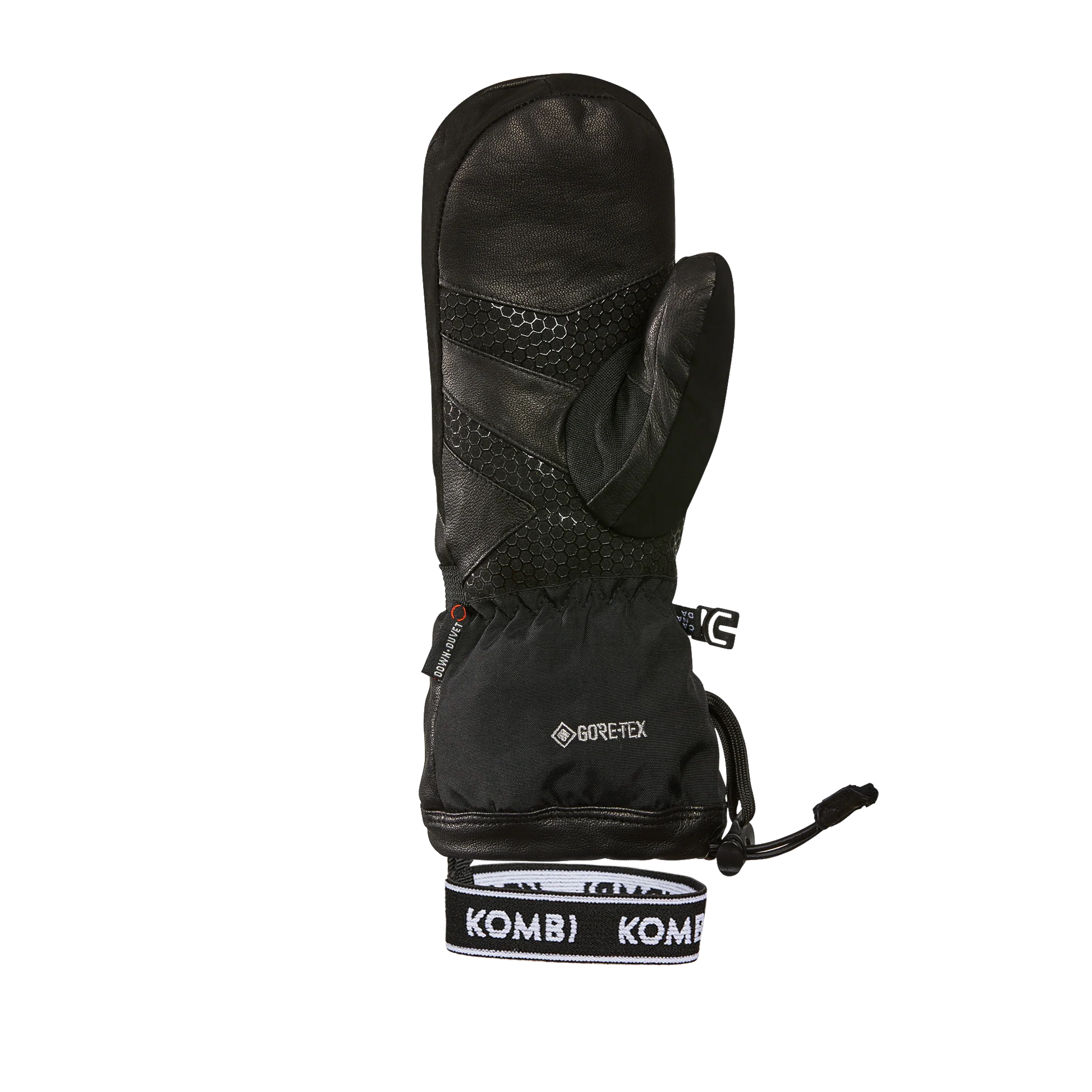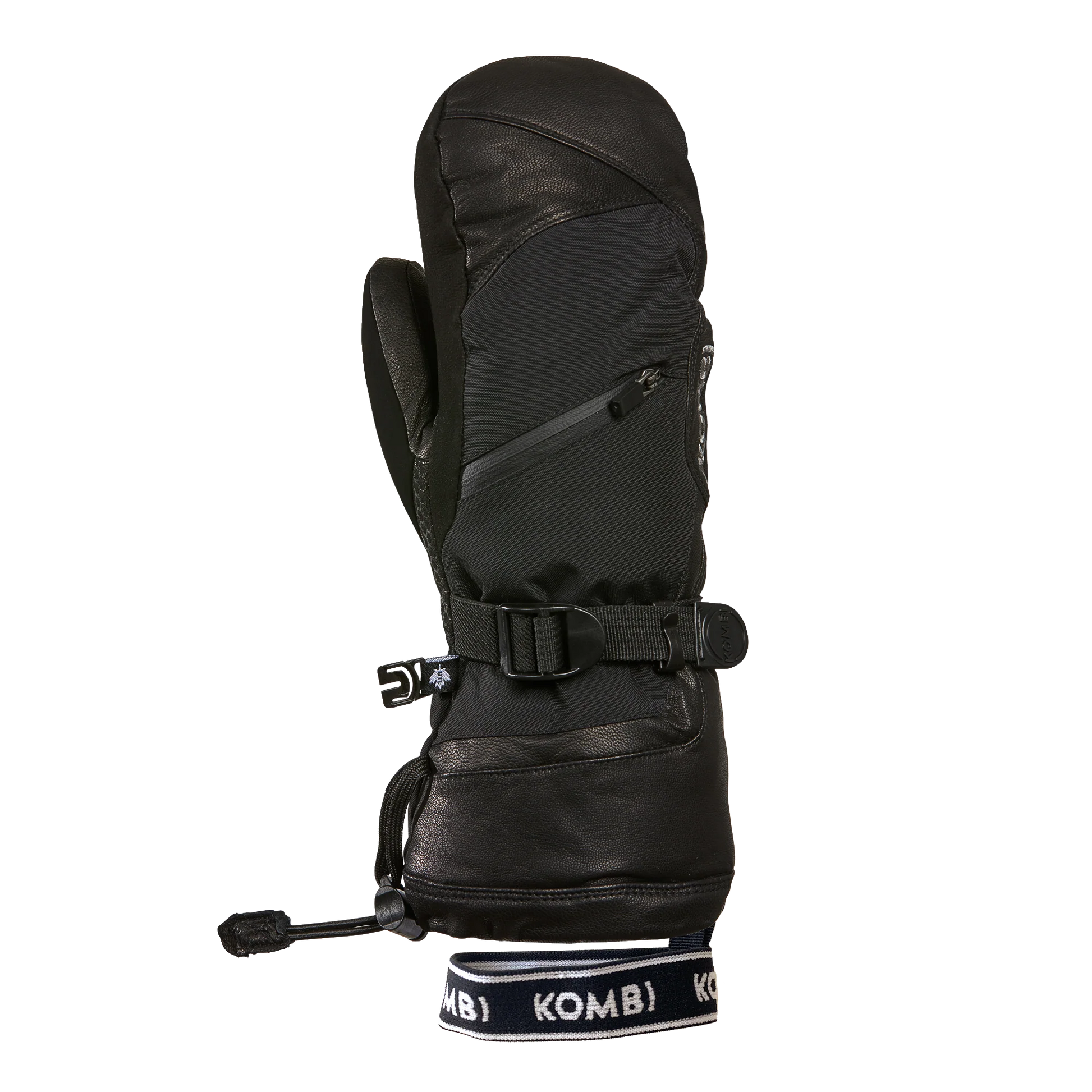 These men’s mitts are made of water-resistant, ultra-durable textured shell with goatskin palms. With a GORE-TEX® membrane and goose down insulation, these KOMBI mitts are certified +GORE WARM for superior warmth and insulation no matter the conditions. With 100% recycled polyester ACCU-DRI® moisture-wicking lining, a mesh-lined pocket with waterproof zipper, and a wrist leash, they are everything you need for ski touring, snowshoeing, snowboarding, and all your winter activities. The Patroller men’s mitts rank 4 on our warmth level scale.